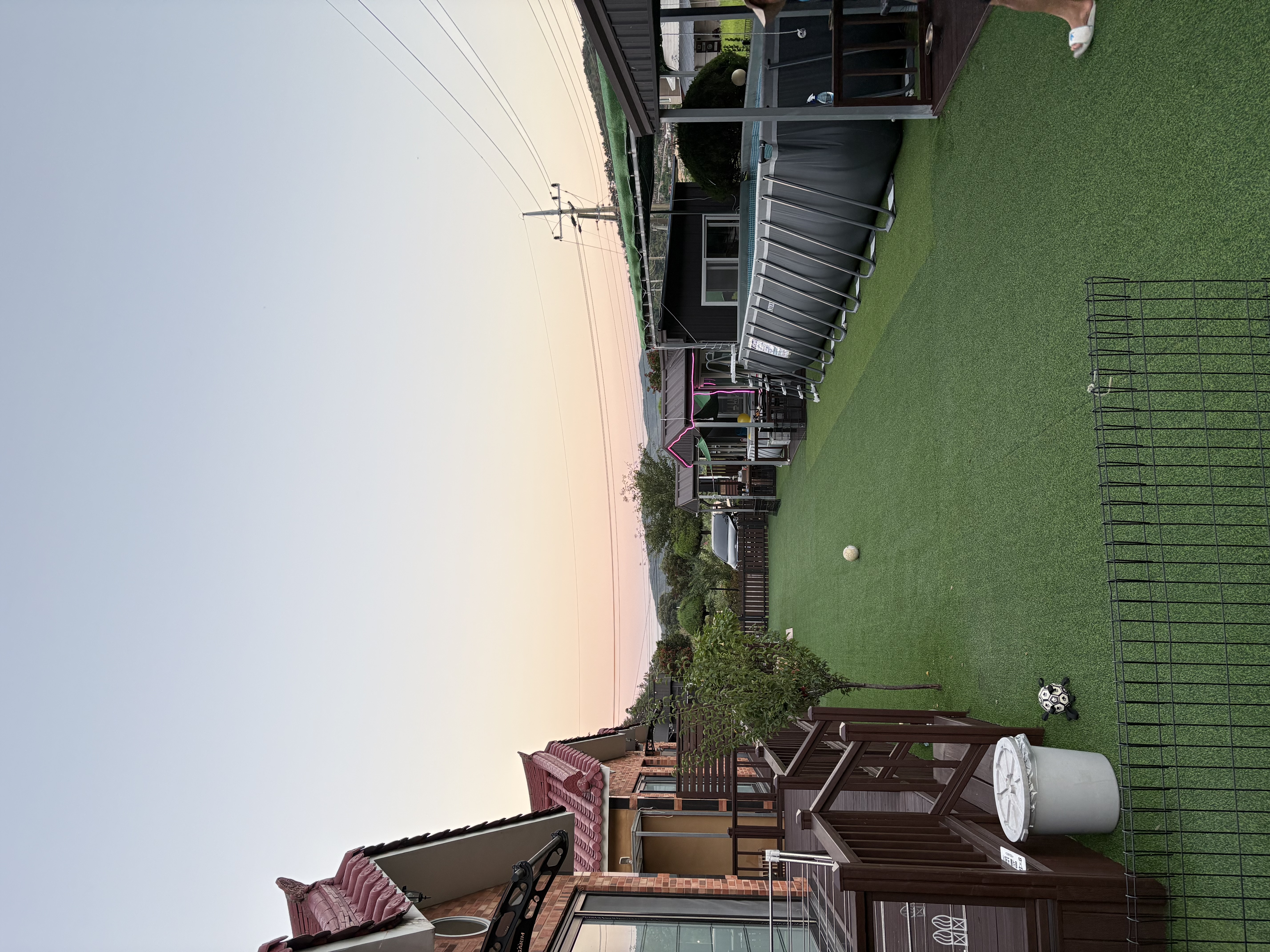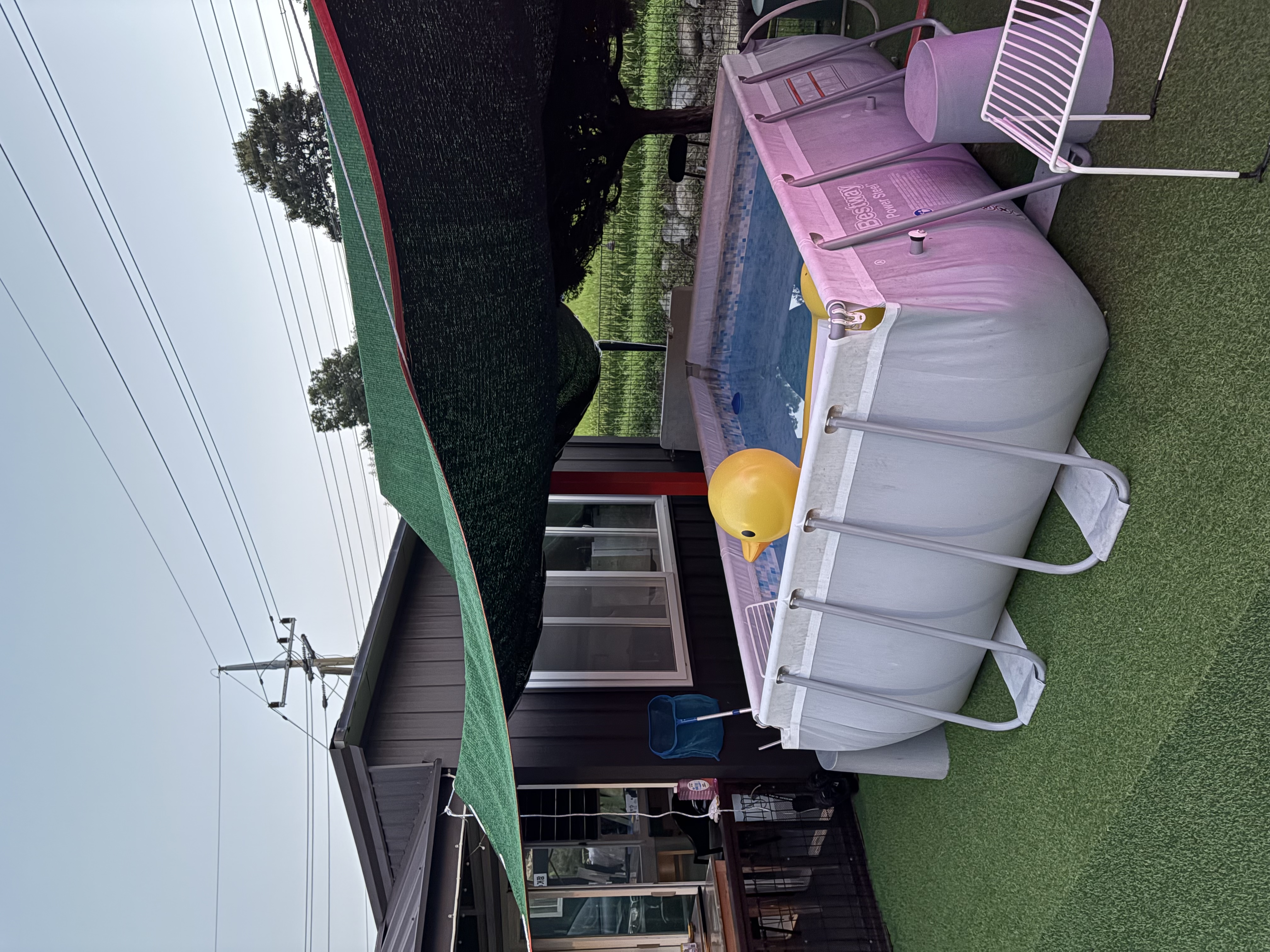 간이 수영장이랑 웰시코기가 우리를 반겨주었다.