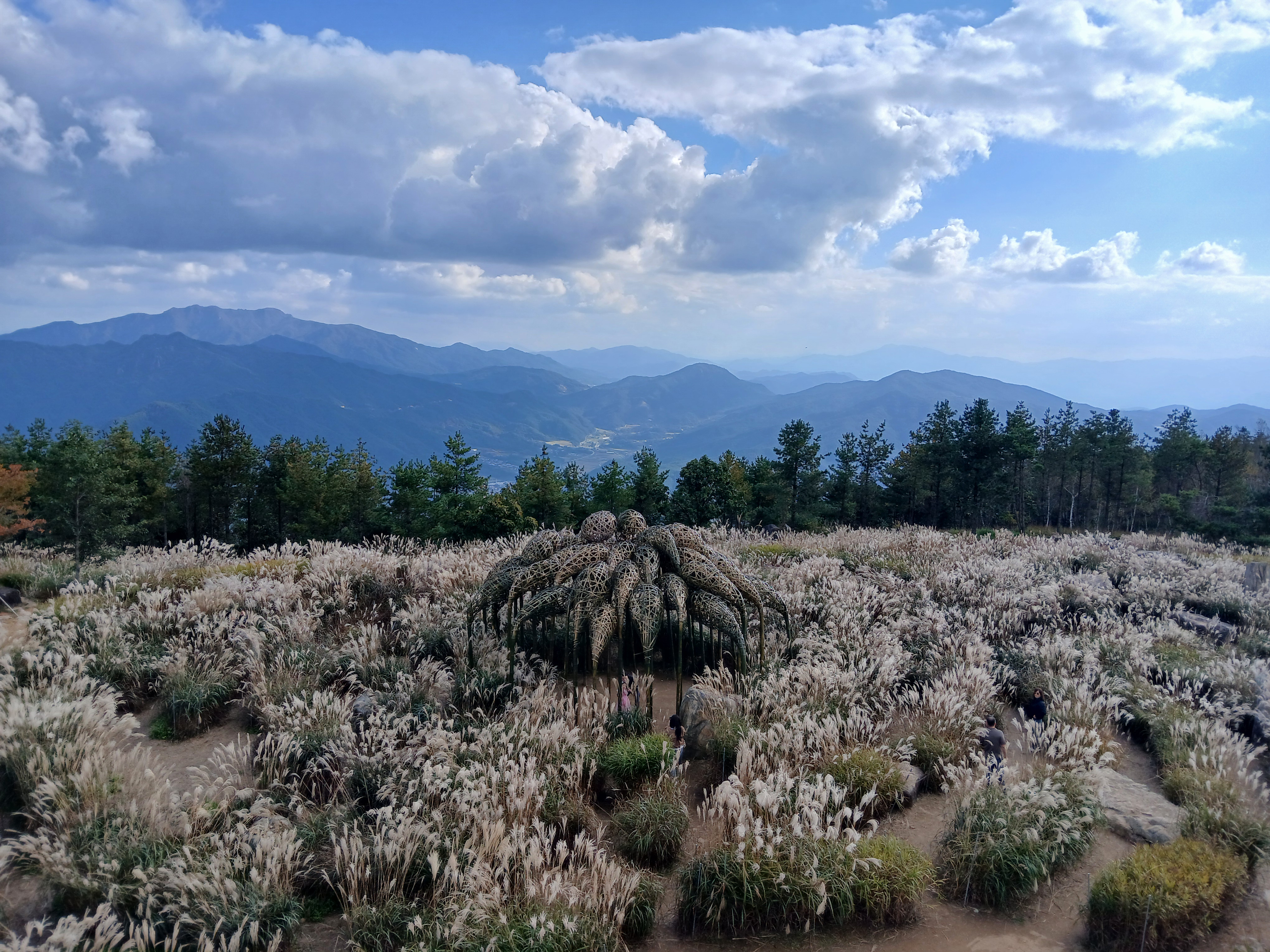 별바람언덕으로 향하는 길은 평화롭다. 포장된 도로를 따라 천천히 오르다 보면, 어느새 산허리쯤에 이른다. 그리고 갑자기 시야가 트인다. 그 순간, 나도 모르게 숨이 멎는다. 언덕 위에 서면 발아래로 거창의 들판이 펼쳐지고, 그 위를 가을 햇살이 천천히 쓸고 지나간다. 바람이 불어오면 억새가 물결처럼 흔들리고, 풍차가 돌아간다. 이름 그대로, 별과 바람이 함께 머무는 언덕이다.