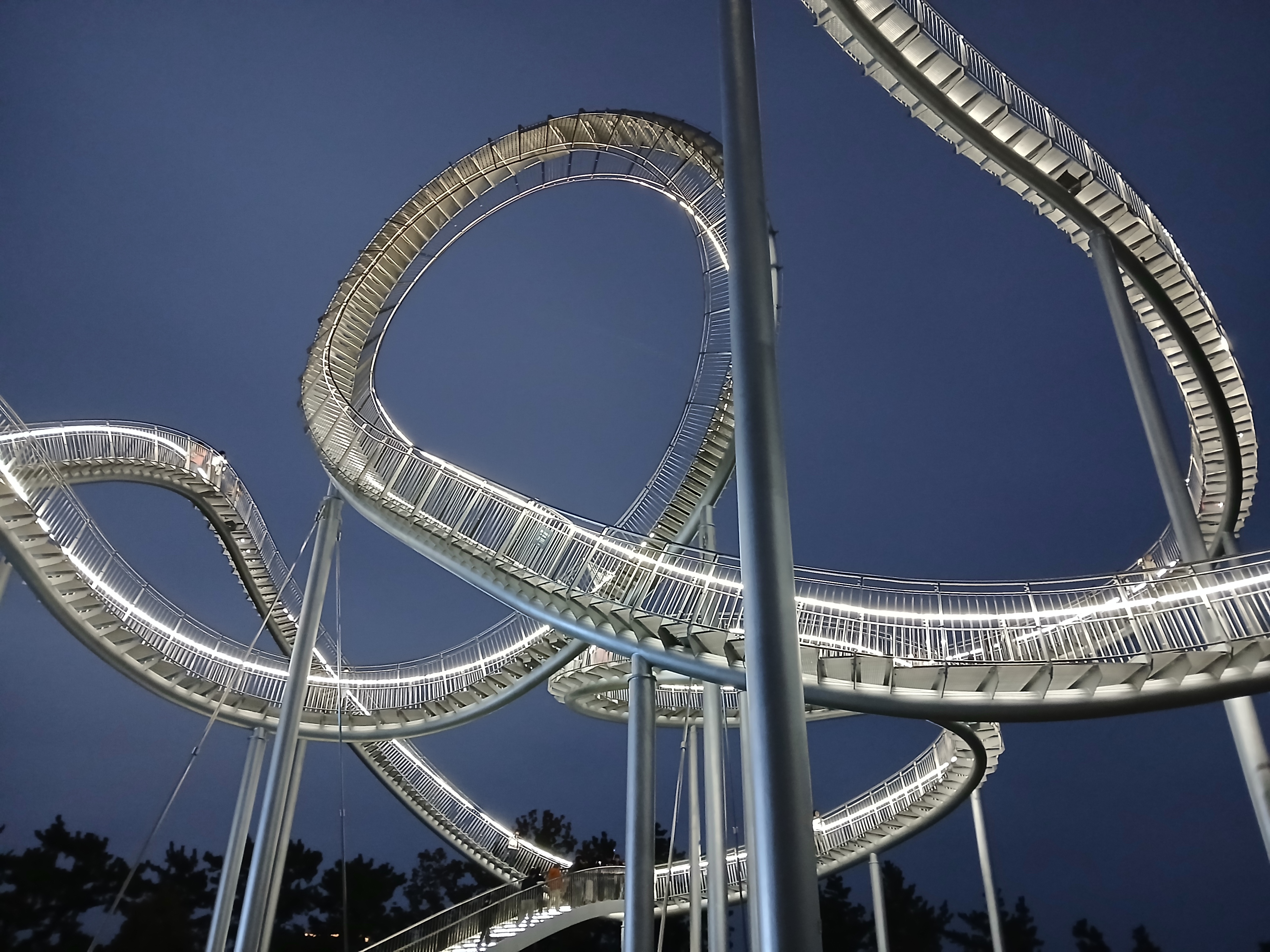 총 길이 약 333미터, 높이 25미터로, 곡선을 따라 이어진 철제 구조물이 하늘을 향해 꿈틀거리는 **‘용의 몸’**처럼 보입니다. 특히 밤이 되면 조명빛이 철골 위에서 살아 움직이듯 반짝이며, 마치 용이 영일만 바다 위로 날아오르는 듯한 장관을 연출하죠.
