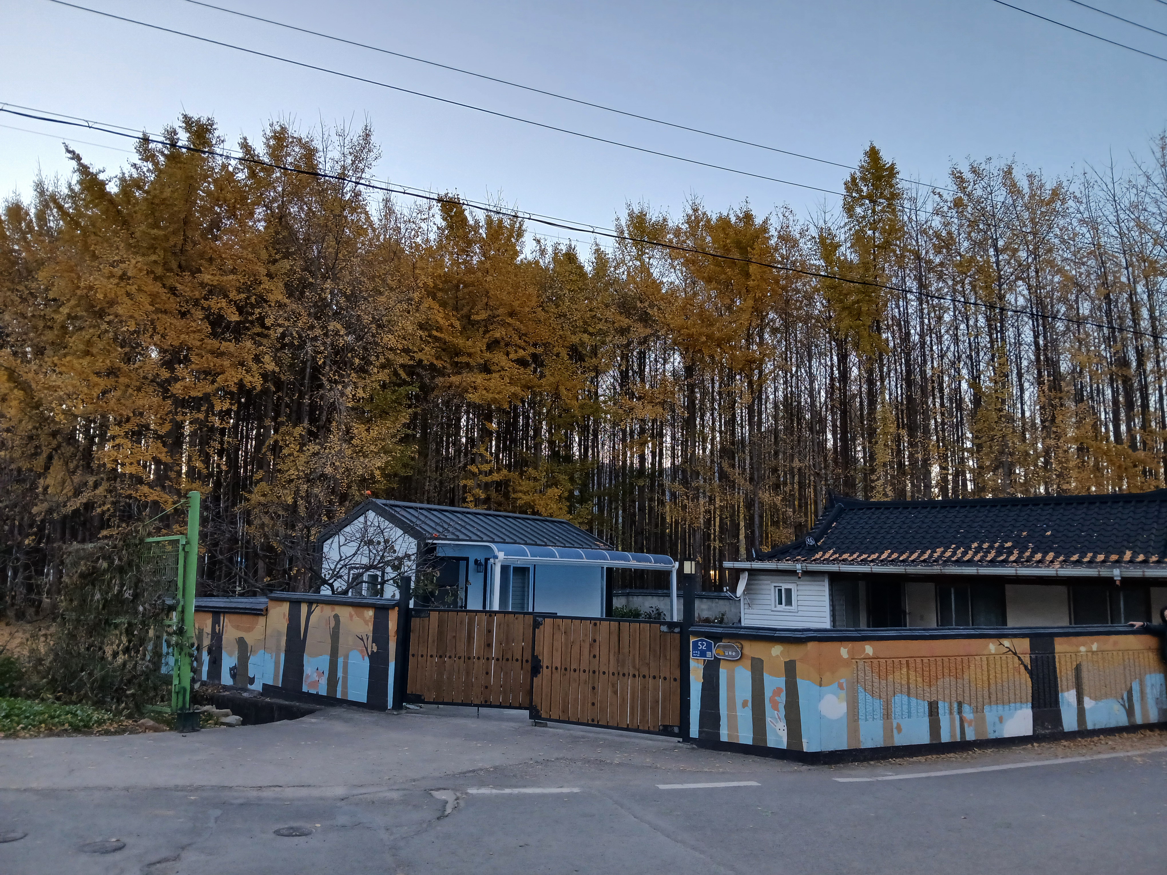도리마을에 들어서면 가장 먼저 눈에 들어오는 것은 은행잎이 햇살을 받아 금빛으로 빛나는 풍경이다.