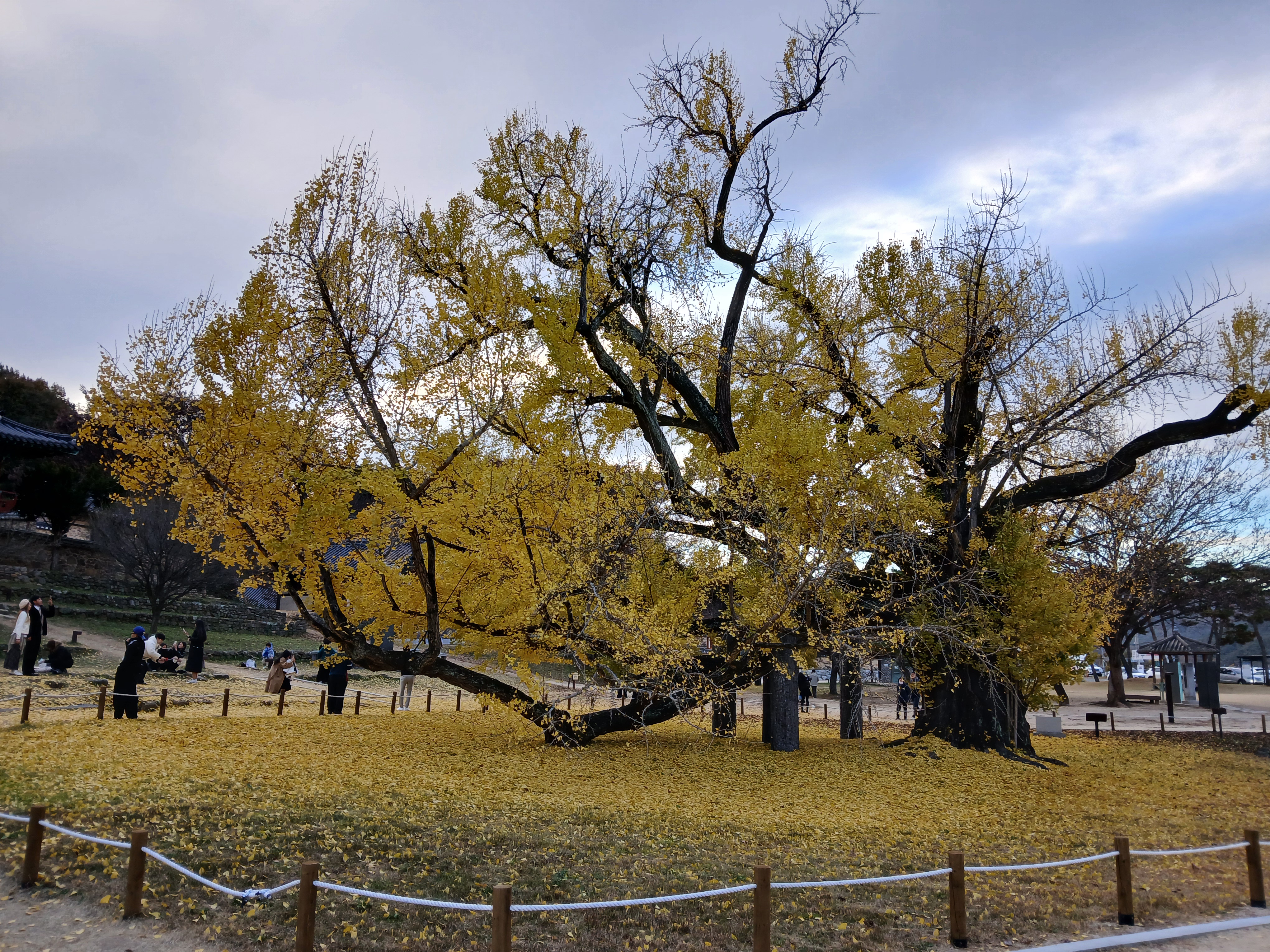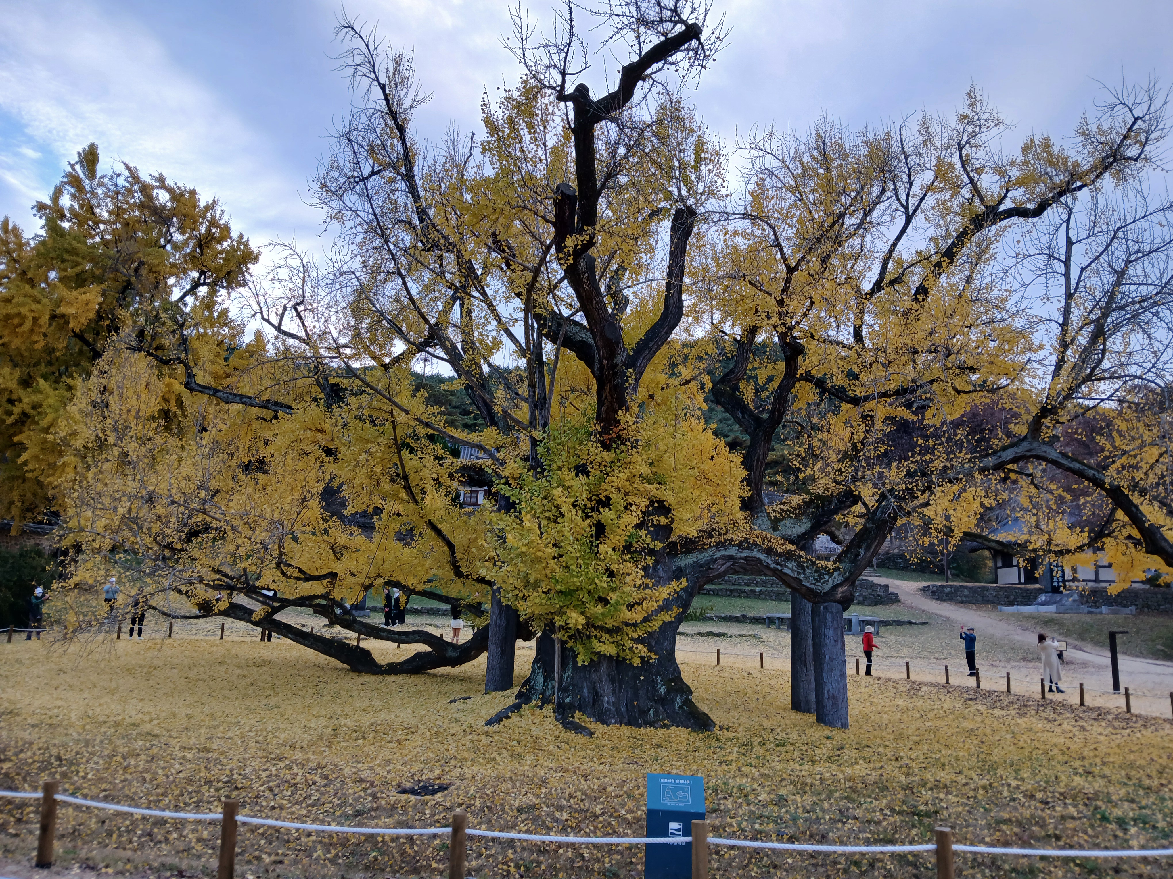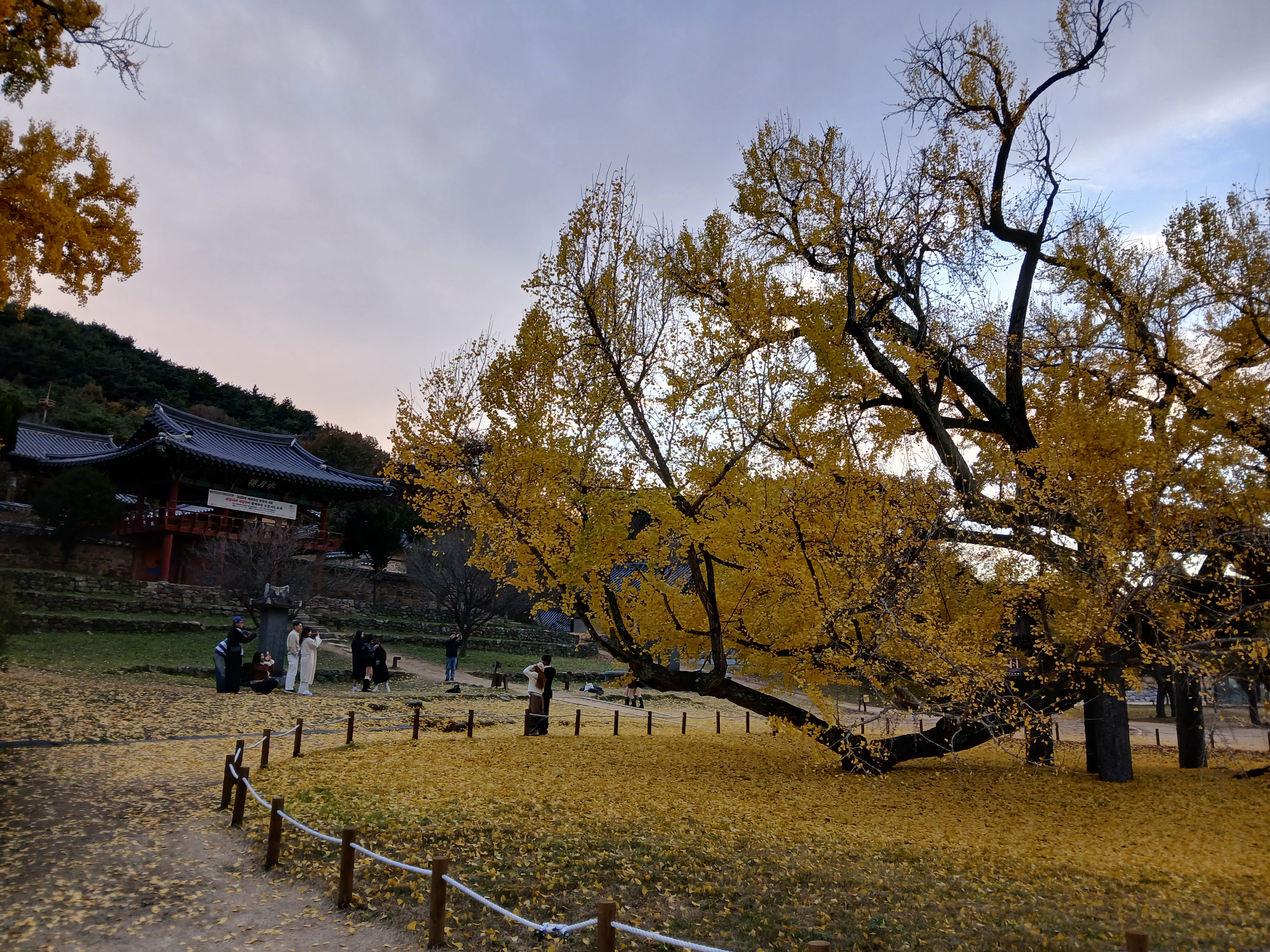 가을이면 이 나무는 마치 세상 모든 빛을 자신에게 모아온 듯, 황금빛 파도로 변한다. 노란 잎이 바람 따라 흔들릴 때면 마치 오래된 시 한 편이 눈앞에서 펼쳐지는 듯하고, 떨어진 잎이 서원 뜰에 쌓일 때면 누군가 조심스레 깔아둔 금빛 카펫을 걷는 기분이 든다.