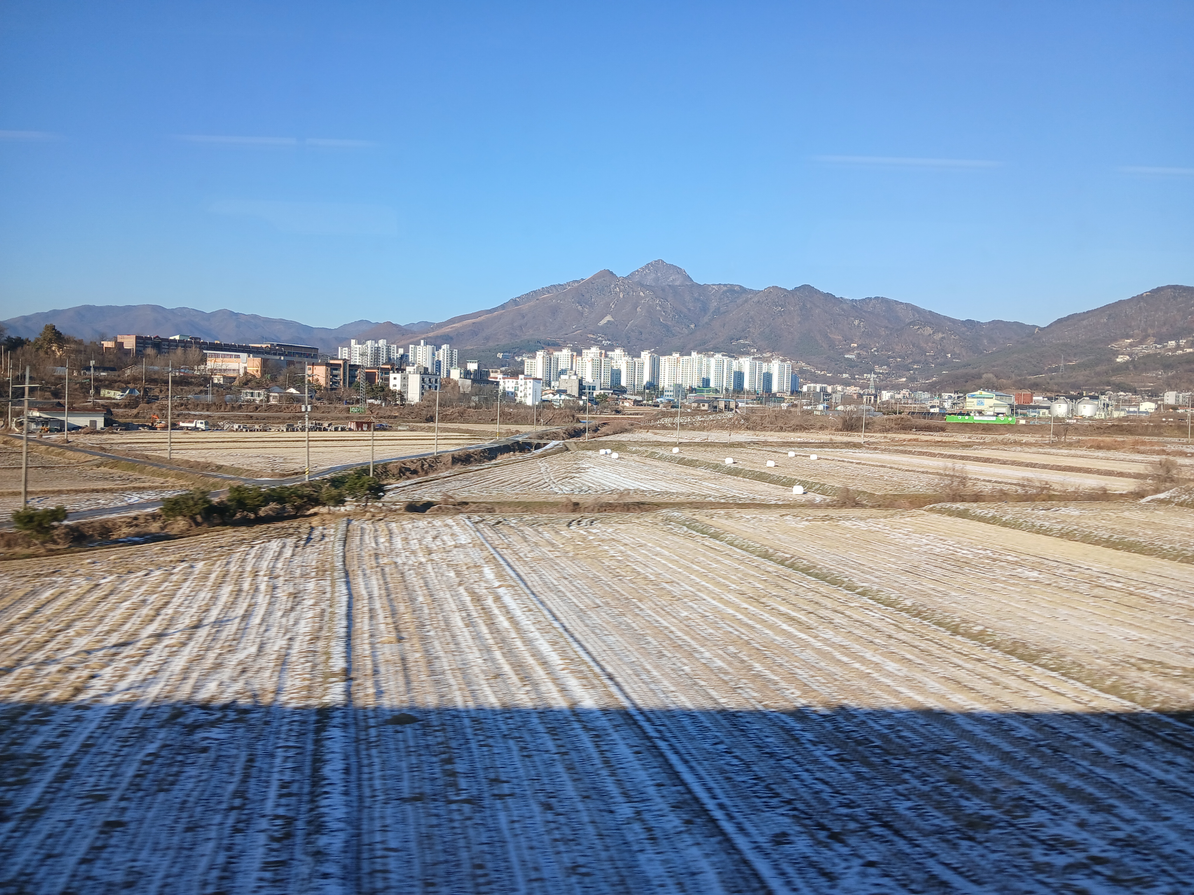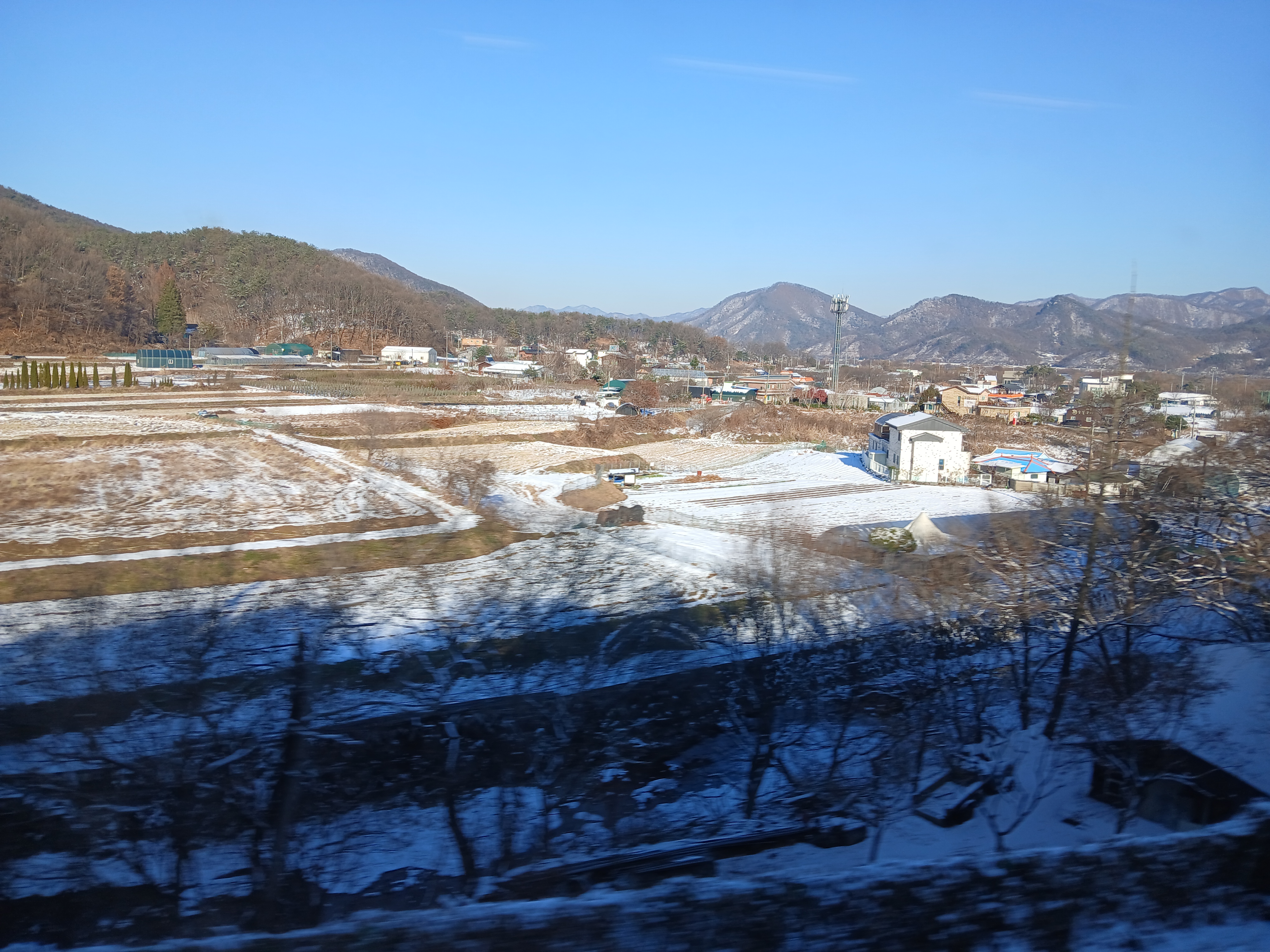 햇빛이 스며든 들판, 까치가 앉아 있는 전봇대, 그리고 눈이 쌓인 작은 고가도로까지 모든 것이 빛을 받아 반짝였다. 열차는 그 빛 속으로 천천히 움직였다.