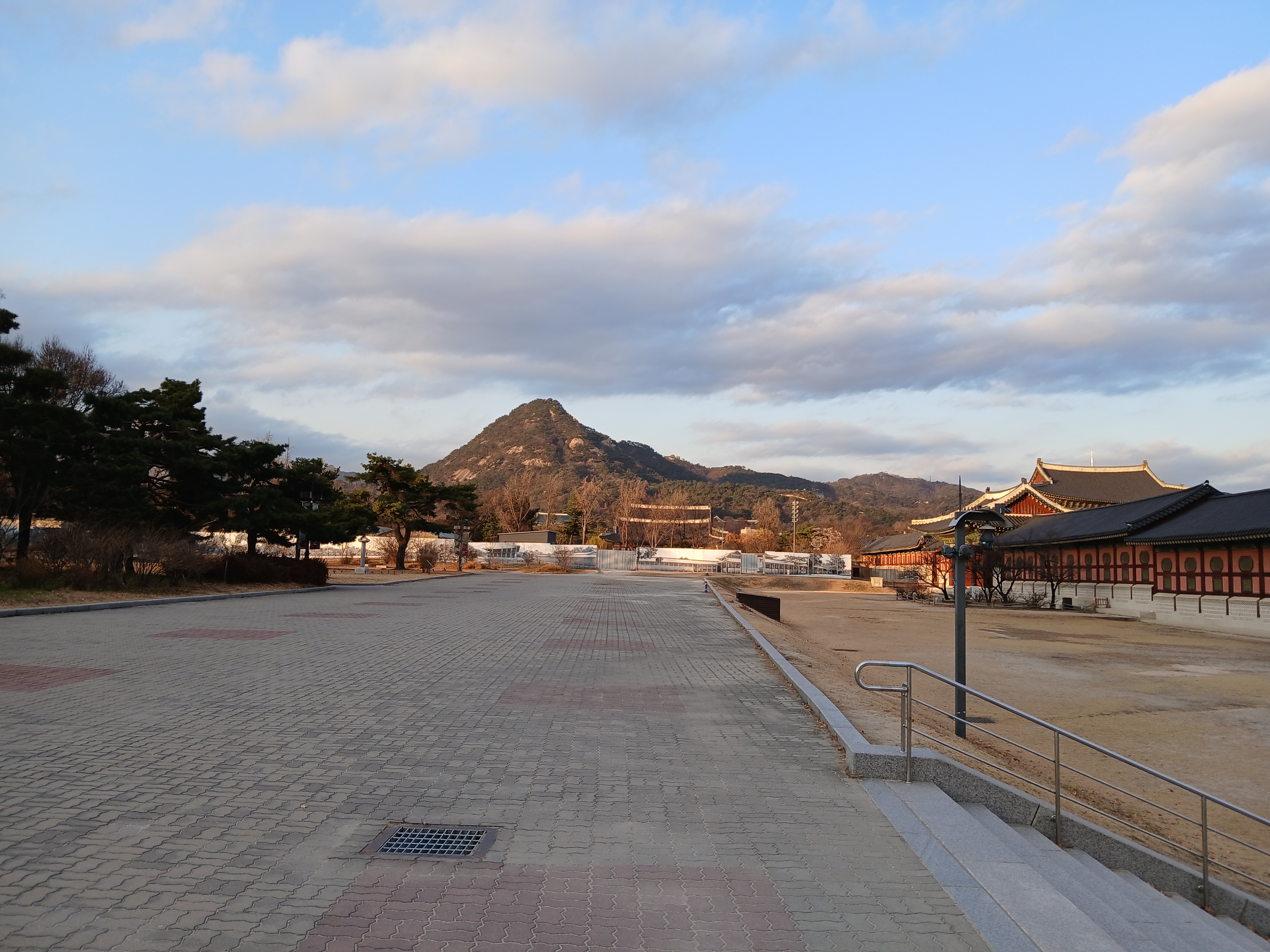 저 멀리 구름이 천천히 흐르고, 계절마다 색이 바뀌는 산은 경복궁을 감싸는 거대한 병풍이 된다. 봄에는 연둣빛, 여름에는 짙은 녹색, 가을에는 붉고 노란 단풍, 겨울에는 흰 눈이 내려앉으며 완전히 다른 느낌을 만든다.